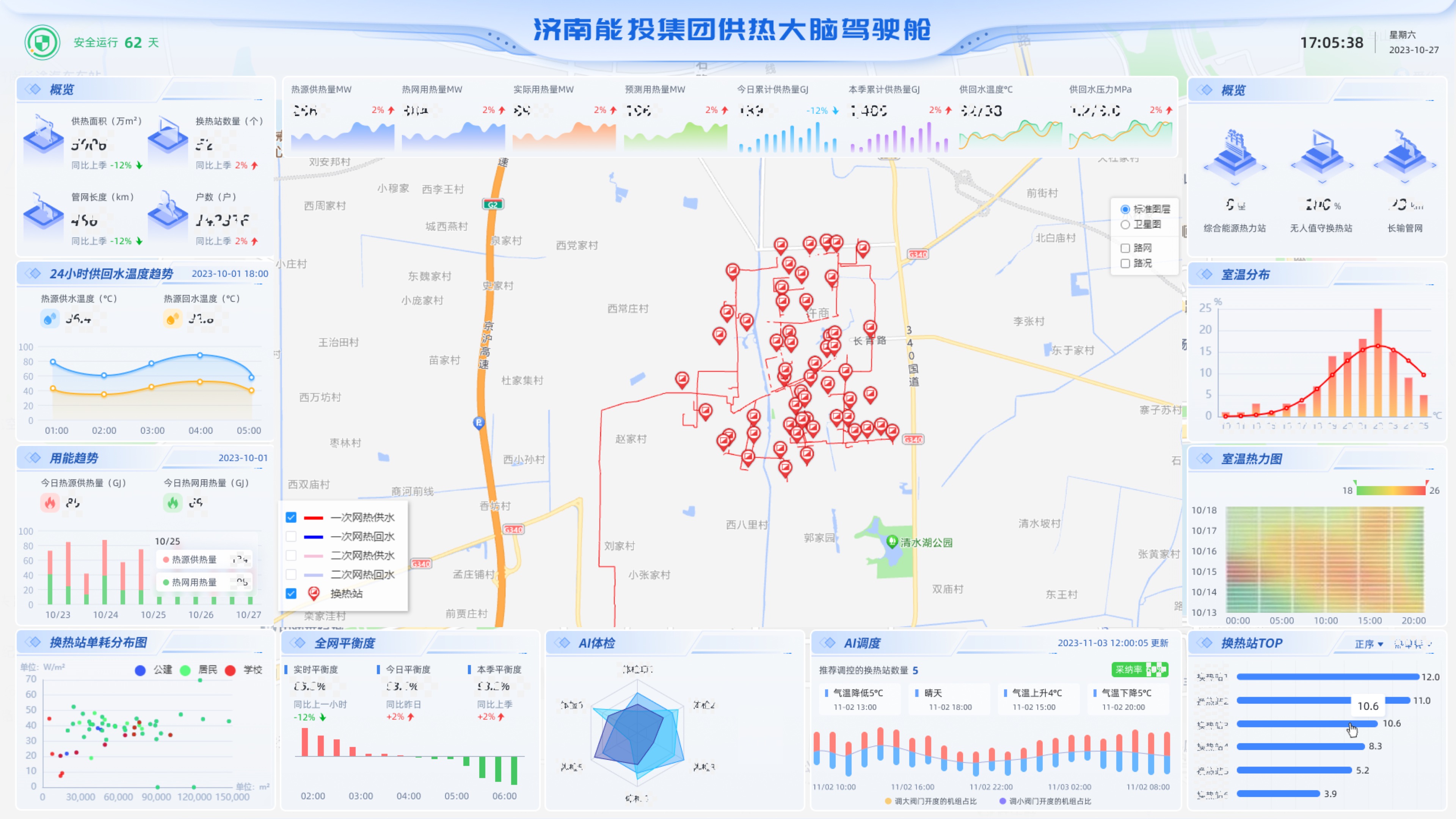 為助力節(jié)能減排、促進(jìn)綠色發(fā)展,針對(duì)熱供給過程中能耗損失大、運(yùn)行調(diào)節(jié)滯后、難以準(zhǔn)確預(yù)測(cè)供需等痛點(diǎn),神思電子以熱力“源-網(wǎng)-端”全過程中產(chǎn)生的海量數(shù)據(jù)為基礎(chǔ),研發(fā)熱負(fù)荷實(shí)時(shí)預(yù)測(cè)、熱源調(diào)節(jié)、熱量分配等核心算法,構(gòu)建智慧供熱大腦平臺(tái),通過高精度仿真計(jì)算、資源治理和優(yōu)化、能源合理高效輸配等形成有效的生產(chǎn)調(diào)度決策。在濟(jì)南市商河縣開展應(yīng)用示范,實(shí)現(xiàn)供熱智慧監(jiān)管、智慧運(yùn)營、智慧調(diào)控,構(gòu)建“安全、綠色、智慧、溫心、經(jīng)濟(jì)”的供熱系統(tǒng)。