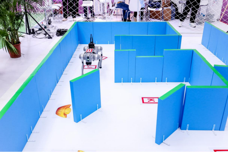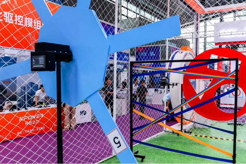 展會(huì)現(xiàn)場(chǎng),設(shè)置“智能體智闖旋關(guān)”與“智能體智探幻陣”游戲,讓觀眾體驗(yàn)“具身智能、空間智能、自主決策”及“空地協(xié)同多智能體聯(lián)動(dòng)”全自主無(wú)人系統(tǒng)的強(qiáng)大能力。在“智能體智闖旋關(guān)”游戲環(huán)節(jié),4位持有民航局頒發(fā)的小型多旋翼無(wú)人機(jī)超視距駕駛員證書(shū)的專業(yè)選手與“神思智飛”展開(kāi)精彩對(duì)決。最終“神思智飛”順利完成比賽,專業(yè)選手均未能完成挑戰(zhàn)任務(wù),在這場(chǎng)人工操控與AI技術(shù)的對(duì)弈中,“神思智飛”大獲全勝。